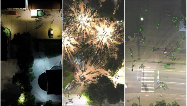 Kako fotografije iz vazduha prikazuju, blokaderi nisu uspeli u "piku" protesta da sakupe više od 1.500 ljudi u ovom gradu. Snimci su nastali u 20:45 časova, dok je planirano da se protestno okupljanje završi oko ponoći.