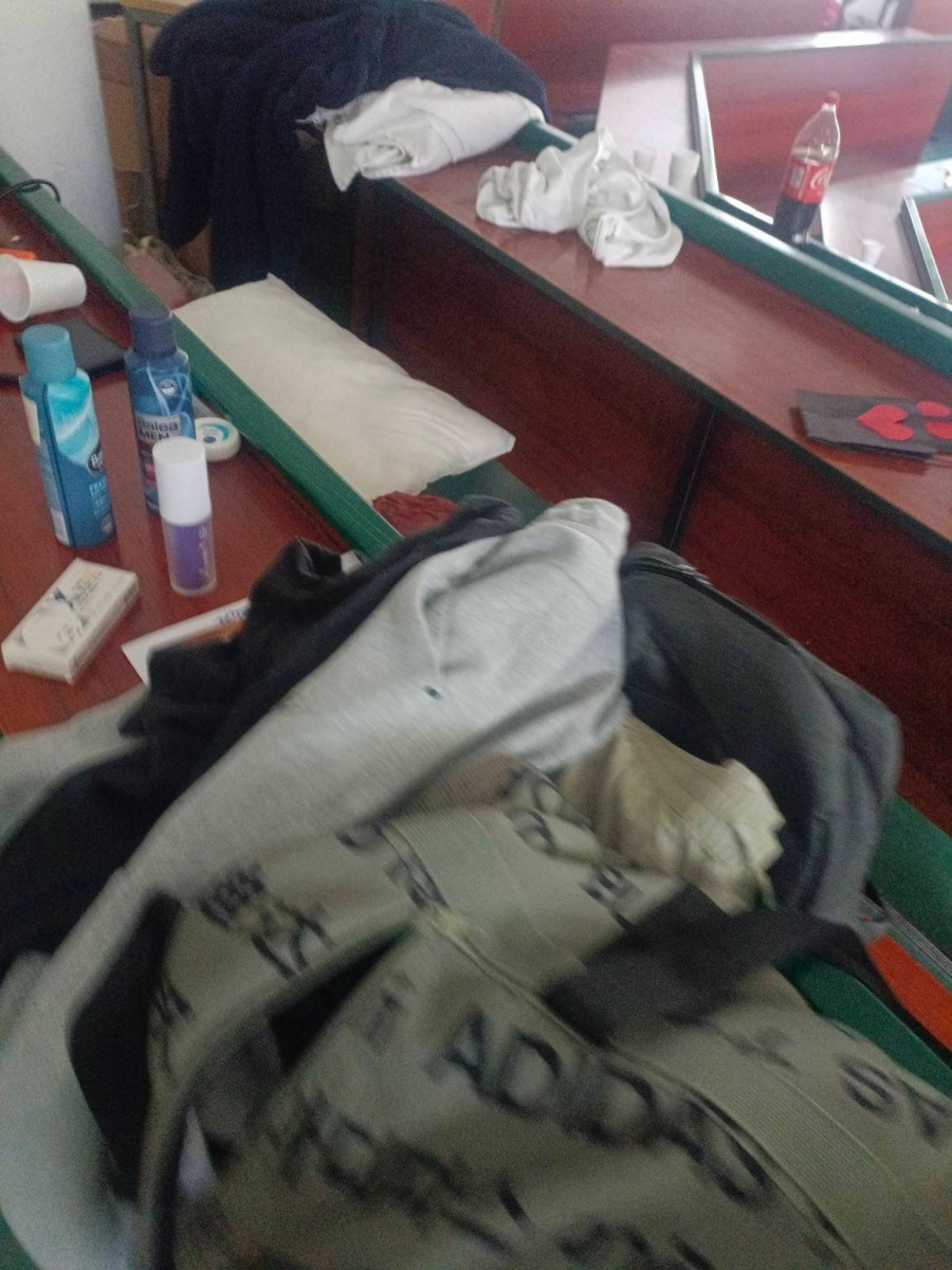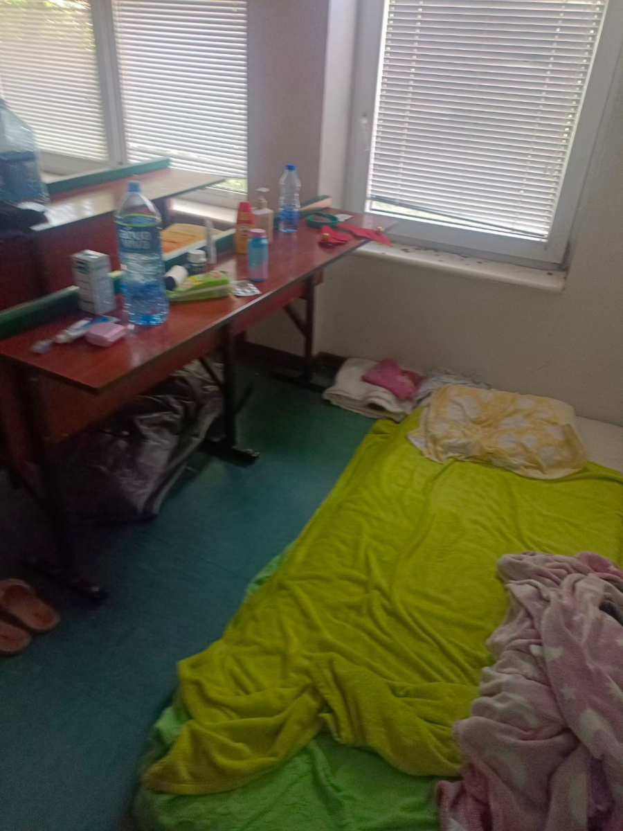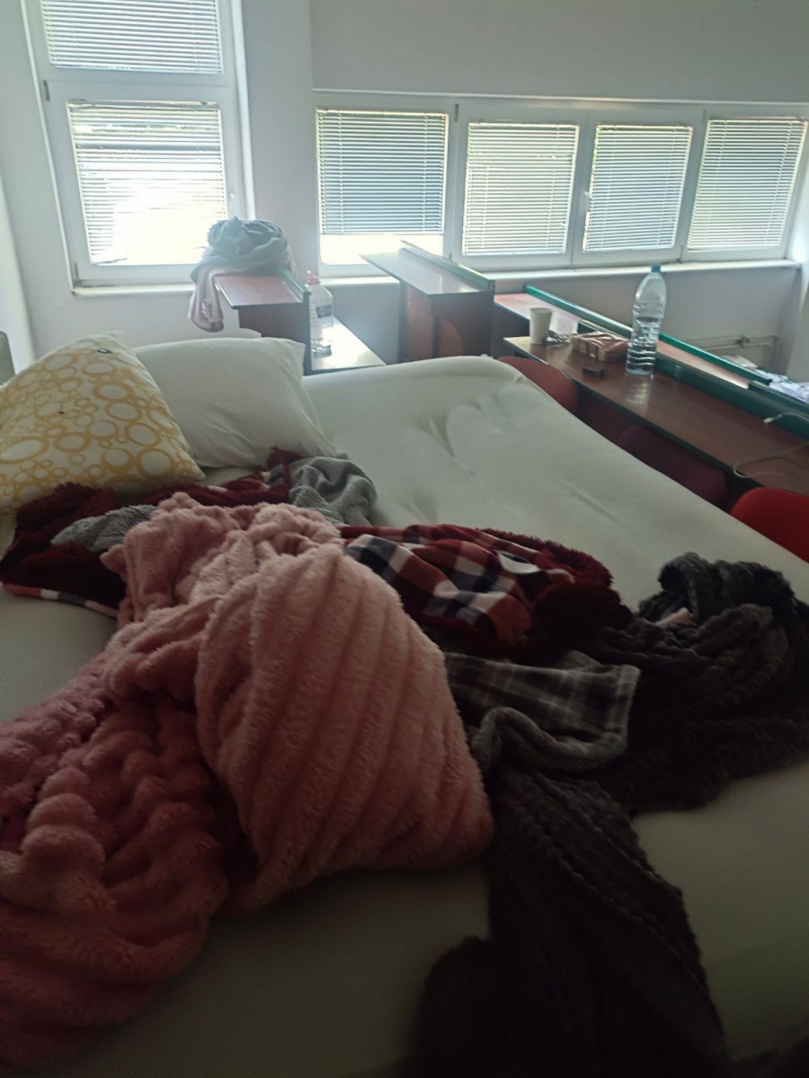 Kako se može videti na slikama sa lica mesta, učionice su pretvorene u spavaonice, stolovi puni ostataka hrane, ambalaže i flaša, podovi prekriveni jorganima i garderobom.