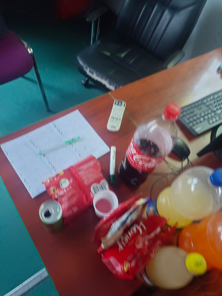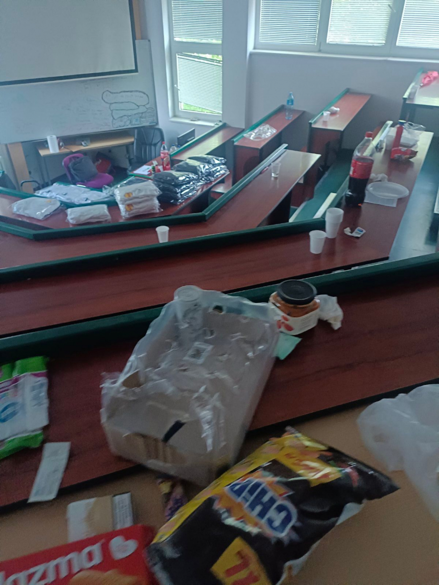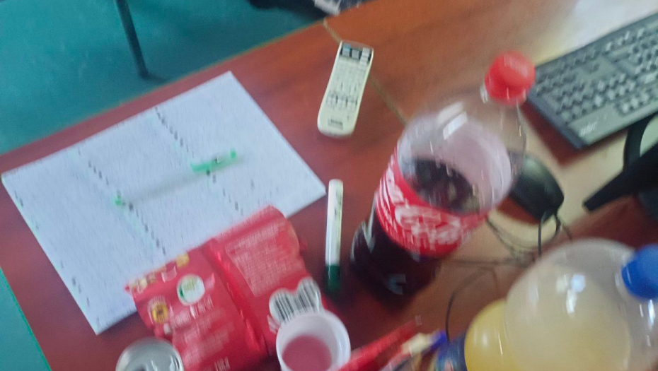 Na pojedinim mestima mogu se videti i higijenski proizvodi razbacani među stvarima, dok su tabla i stolovi pretrpani grickalicama, sokovima i prljavštinom.