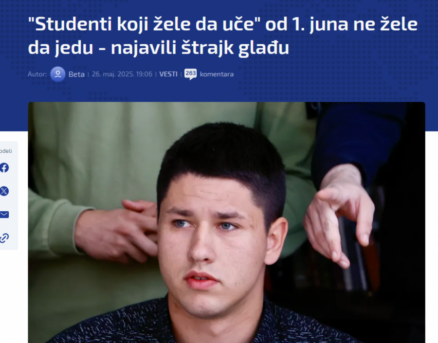 S druge strane, kada predstavnik studenata koji žele da uče Miloš Pavlović radi to isto, on "ne želi da jede".
