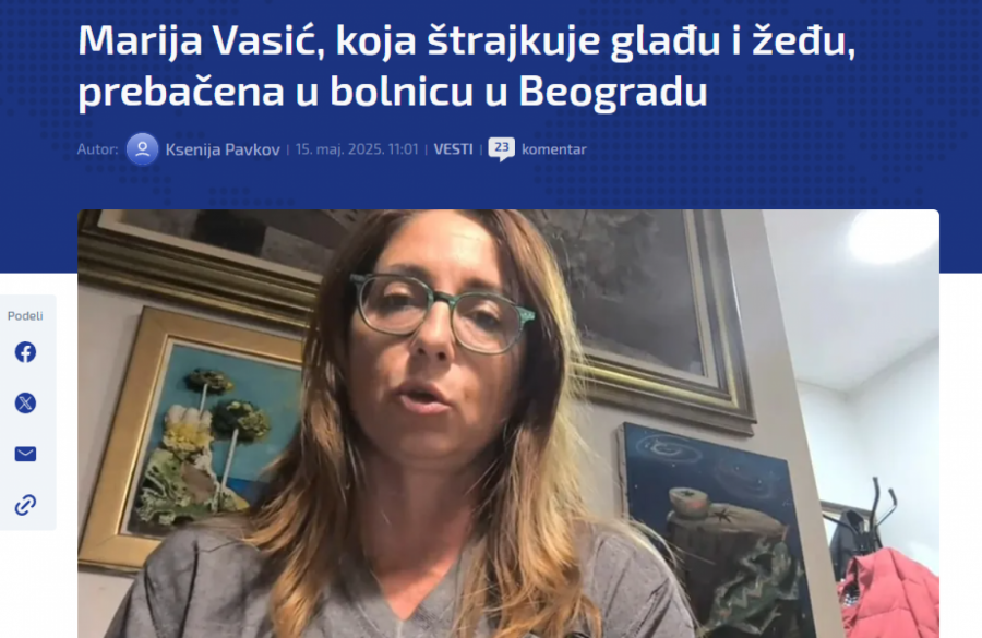 Tako, kada profesorka Marija Vasić, koja se sumnjiči za pripremanje dela protiv ustavnog uređenja, štrajkuje odbija da jede, ona štrajkuje glađu.