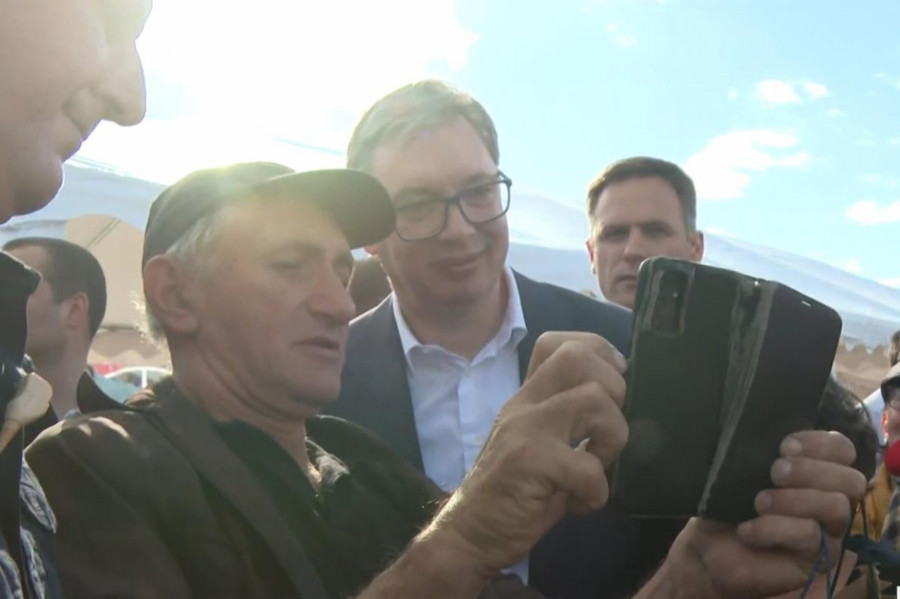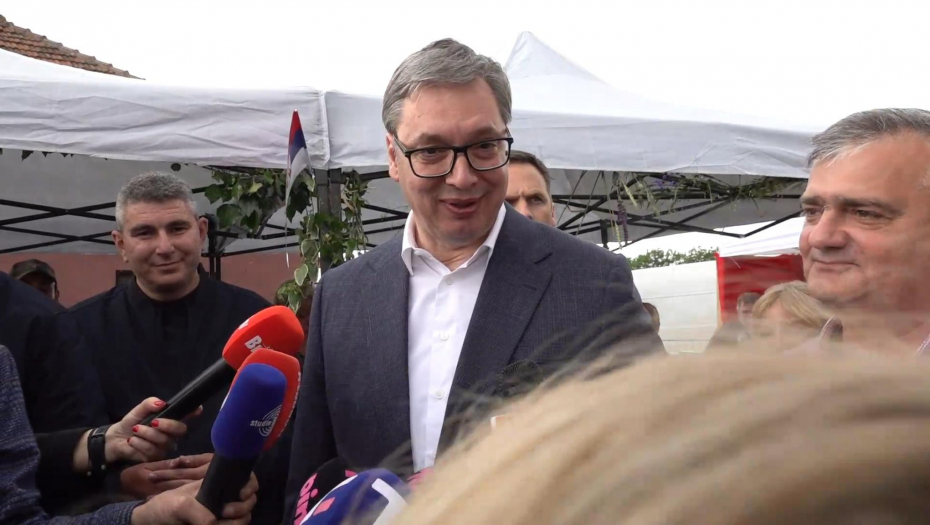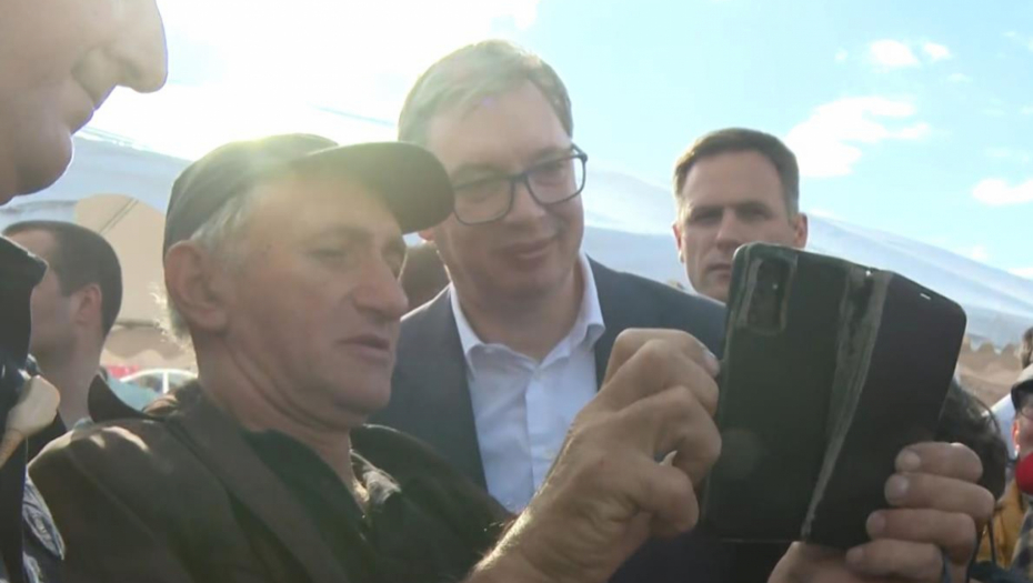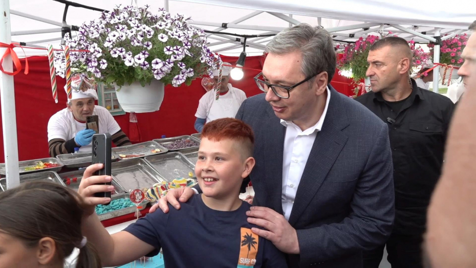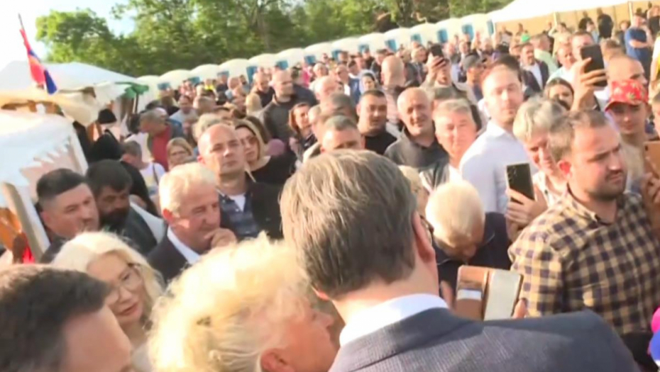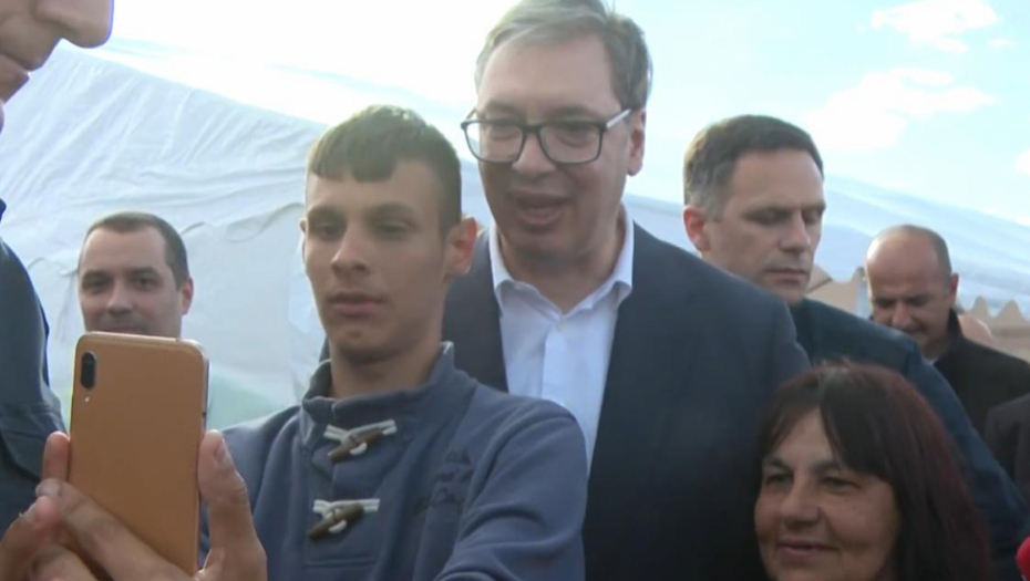 Predsednik Srbije obišao je prigradsko naselje Grljan, gde se pozdravlja sa meštanima od kojih je dobio brojne poklone.