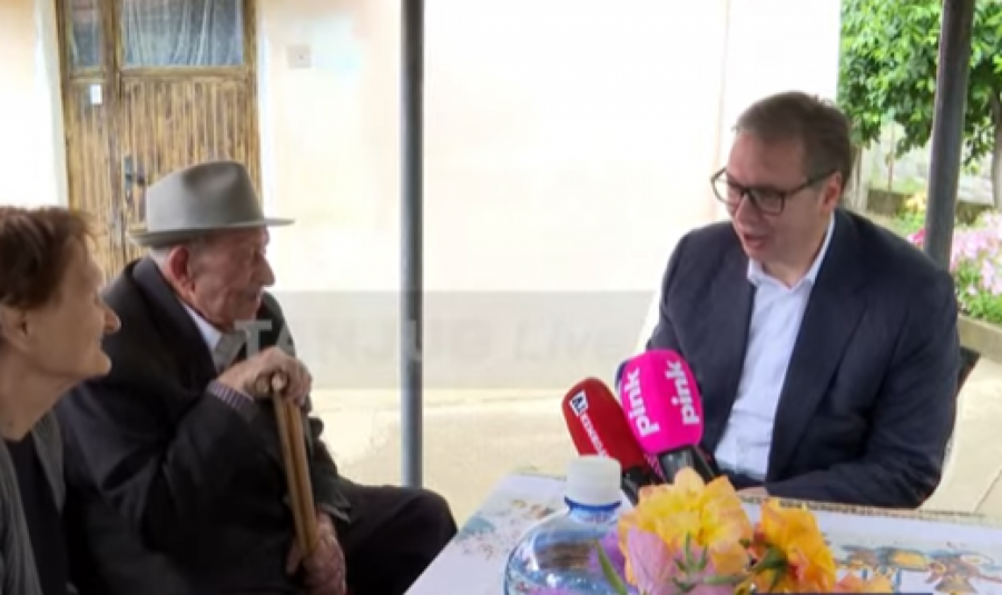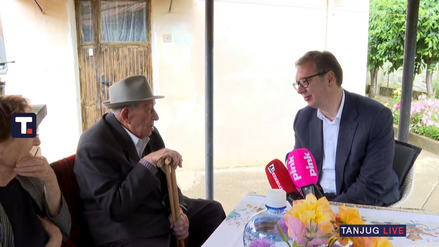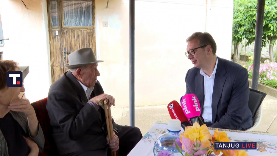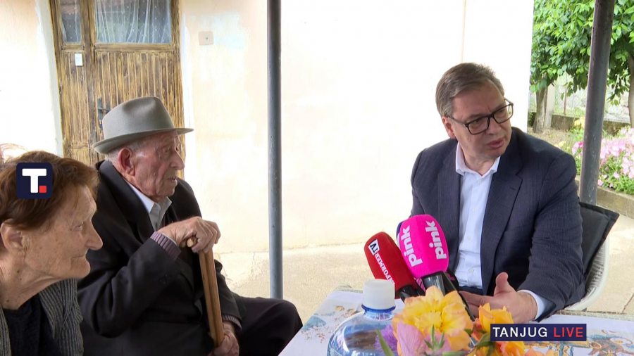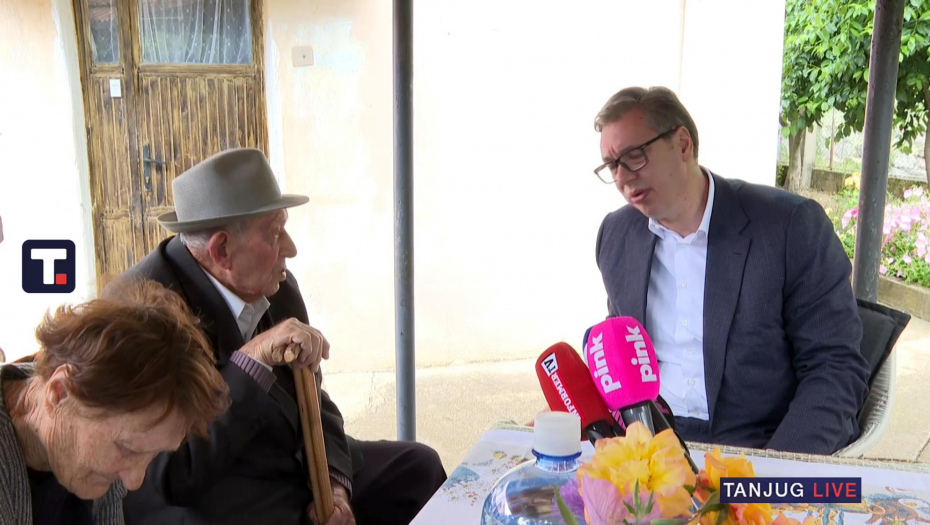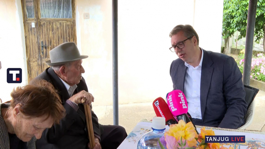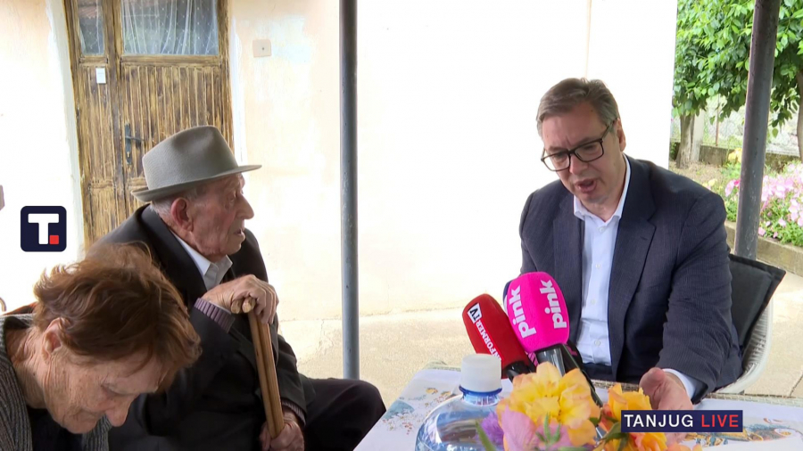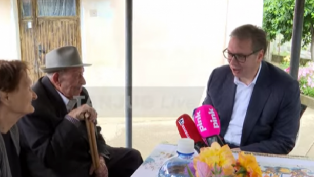 Vučić je prvo posetio Vukosava Đorđevića i njegovu porodicu. Vukosav ima 105 godina i živi u Zaječaru, a kaže da je u penziji od 1977. godine.