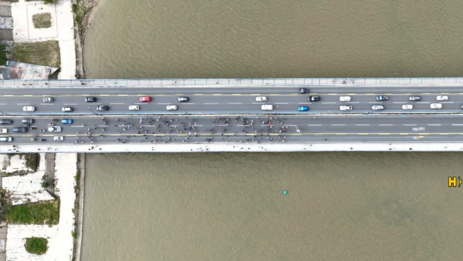 Trenutno, oko 160 ljudi prelazi Brankov most iz pravca Novog Beograda.