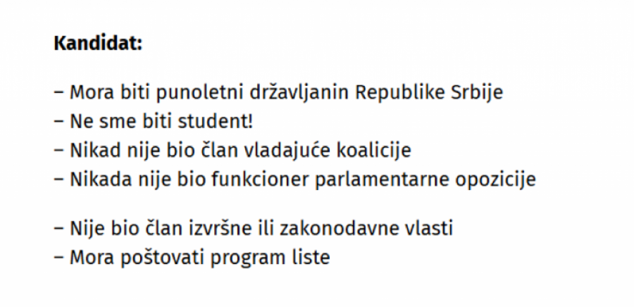 Ukoliko bi ovi kriterijumi bili doslovno primenjivani, to bi praktično značilo da na studentskoj listi nema mesta za Dragana Đilasa, Mariniku Tepić, Miroslava Aleksića.