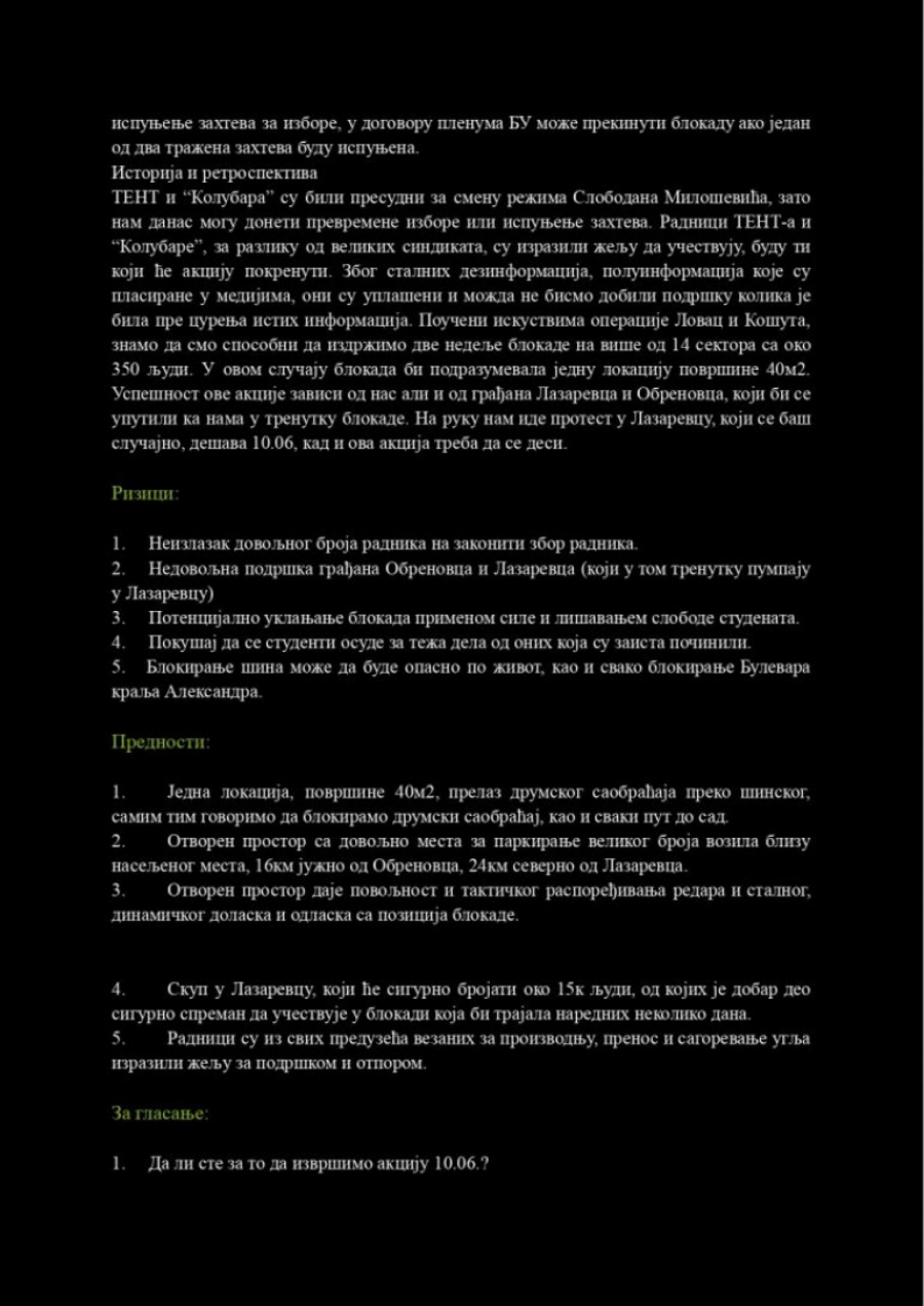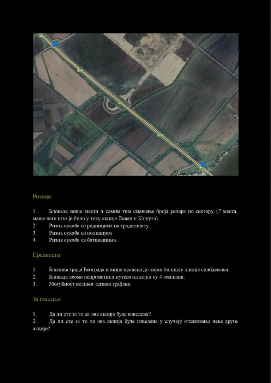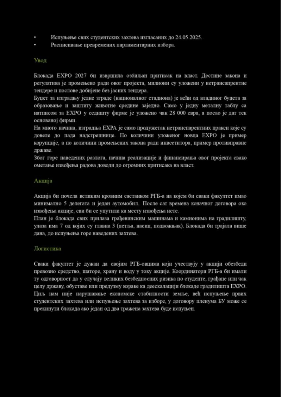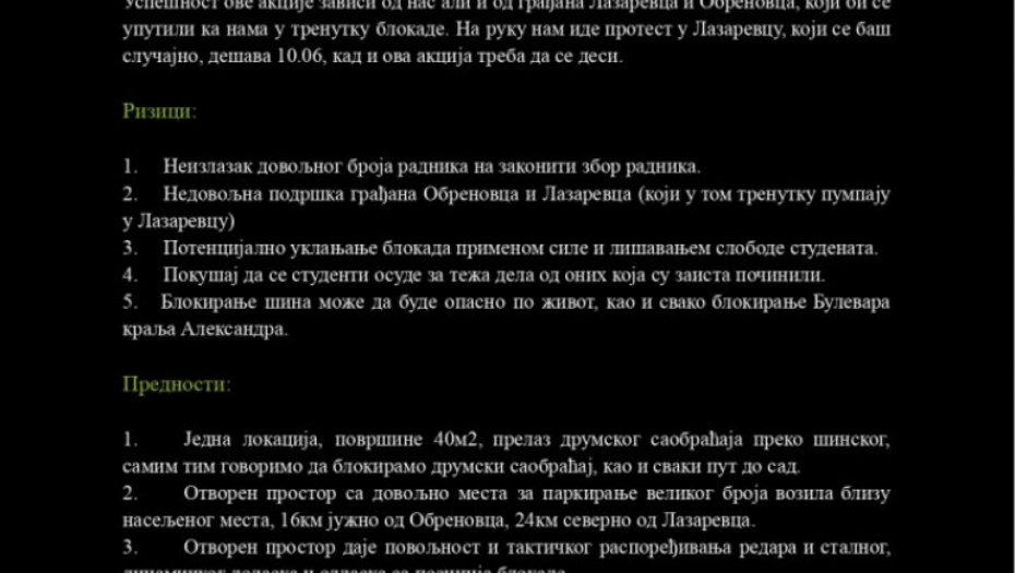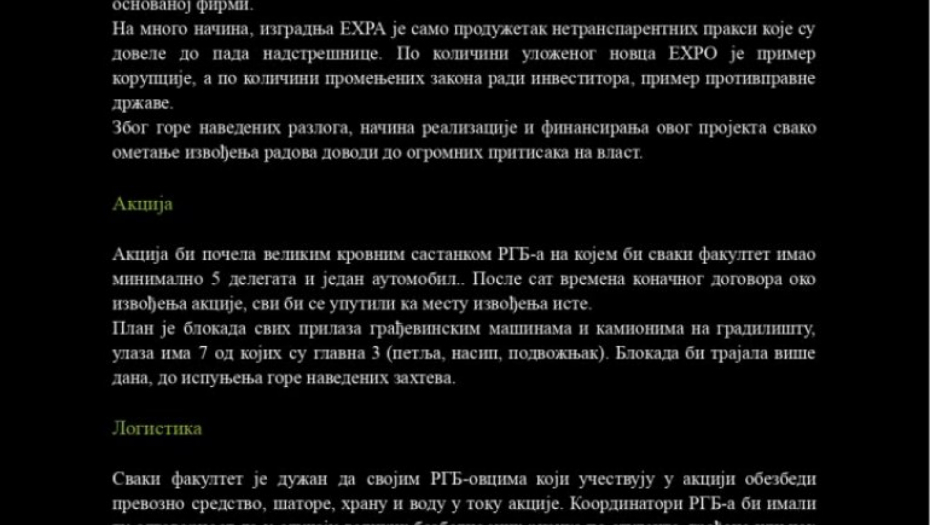 Do redakcije „Alo!” došli su planovi ove grupe koji neodoljivo podsećaju na teroristički elaborat, sa jasno definisanim ciljevima: paralisanje energetskog sistema Srbije, blokada saobraćajnica i međunarodnog događaja EXPO 2027.