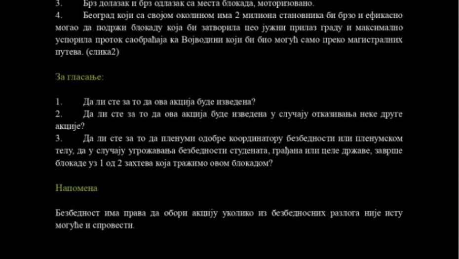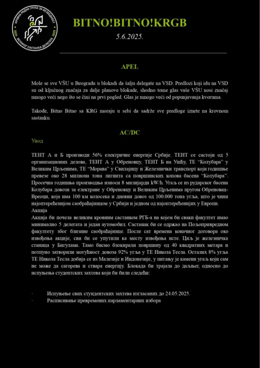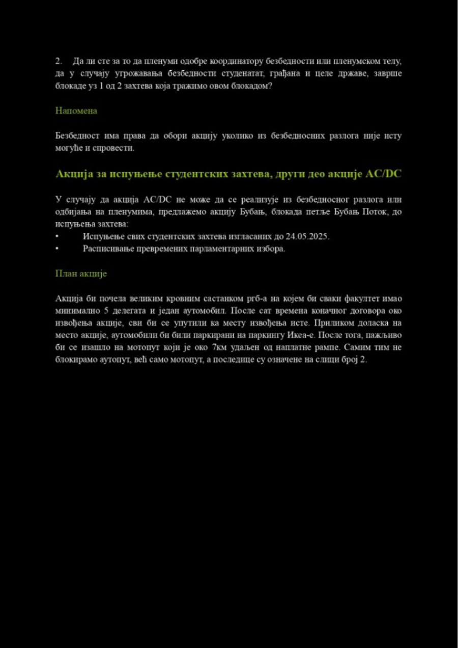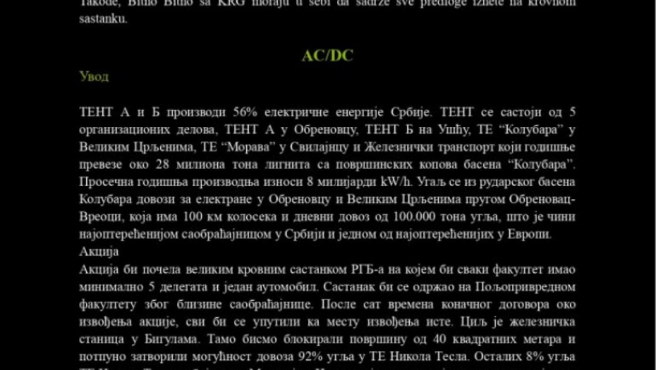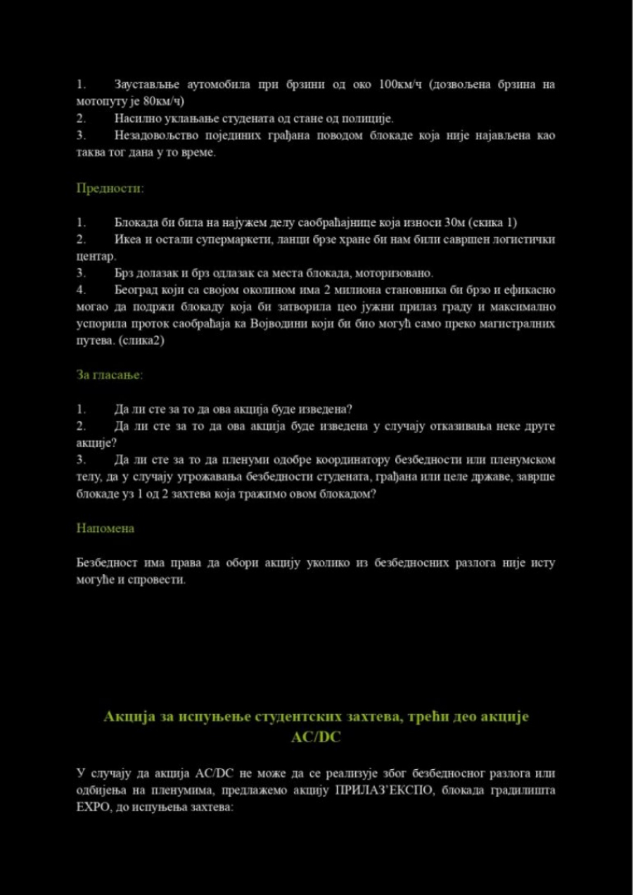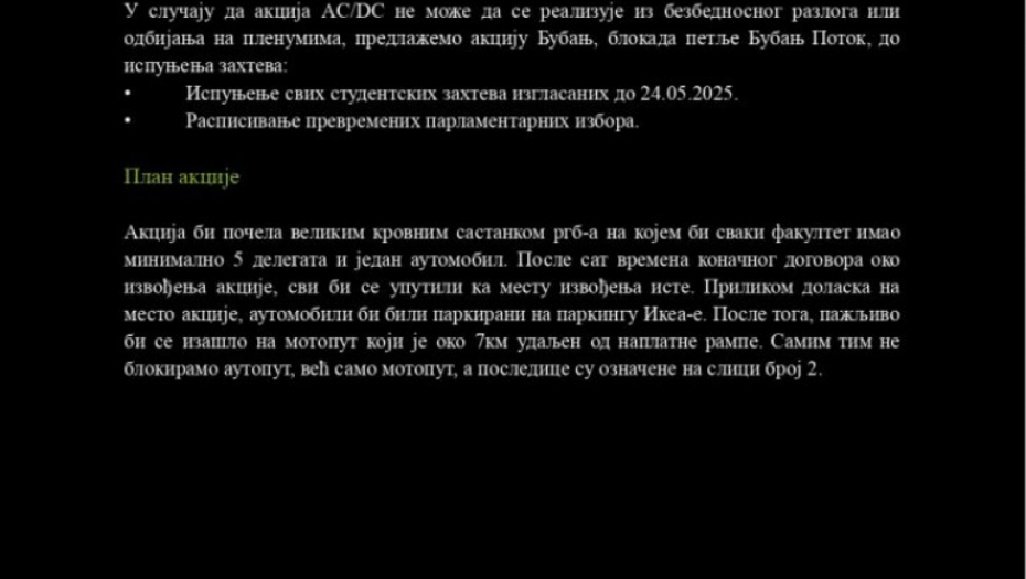 Iako im je i večerašnji pokušaj sazivanja kvoruma na „plenumu” propao, došli smo u posed materijala koji je trebalo da bude usvojen. Reč je o tri faze akcije pod kodnim imenom AC/DC, koje su bile planirane za 10. jun. Ovi planovi ne ostavljaju nikakvu dilemu – cilj je izazivanje haosa u državi i izazivanje međunarodne sramote.