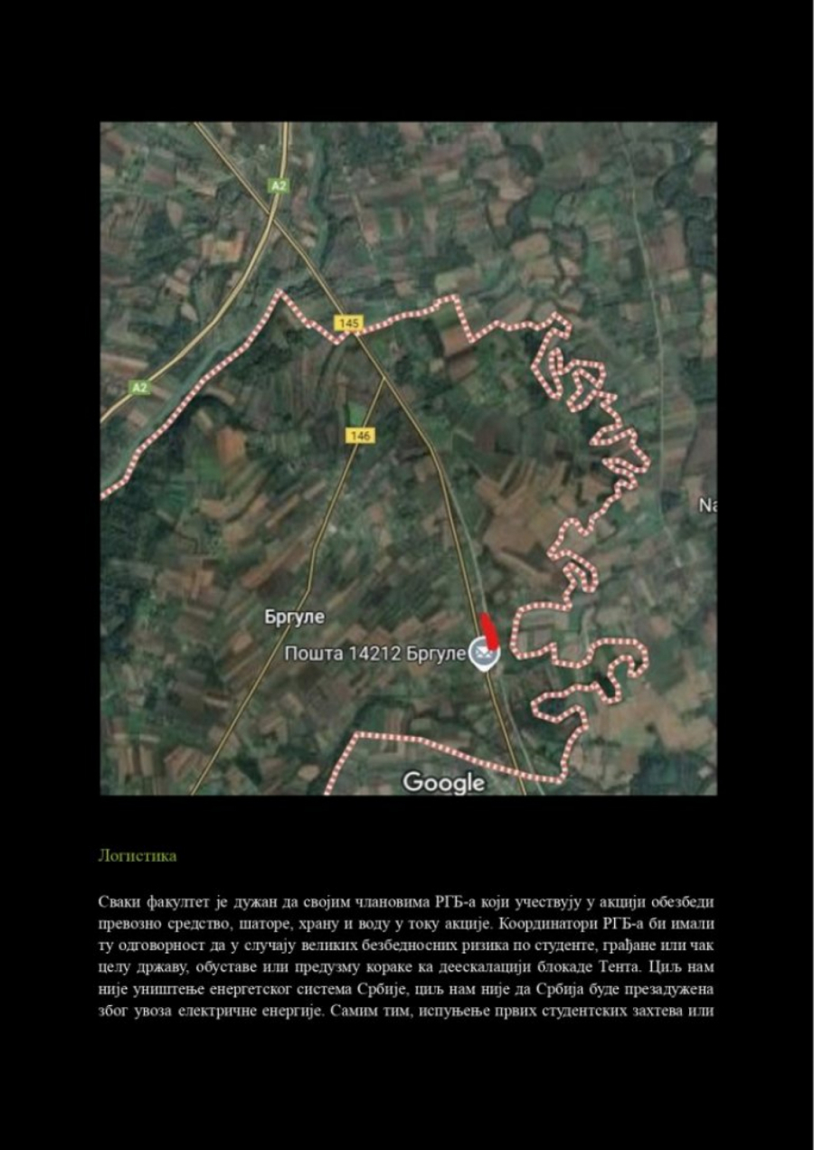 Blokaderi su želeli da potpuno zaustave dotok lignita za TENT, elektranu koja snabdeva više od 50% Srbije strujom. U dokumentu se eksplicitno navodi da bi akcija obustavila 92% ukupne isporuke uglja, što bi dovelo do crnog scenarija – nestanka struje za milione građana! Lokacija za napad: železnička stanica u Bigulama.