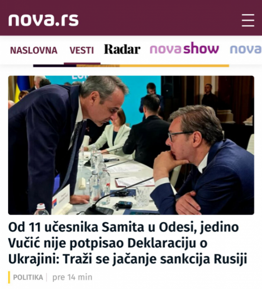 Predsednik Aleksandar Vučić izjavio je da danas u Odesi, gde je održan samit Ukrajina-Jugoistočna Evropa, nije izdao Rusiju kako to tvrde pojedini mediji u Srbiji i istakao da ponovo nije potpisao deklaraciju već da je Srbija bila uzdržana.