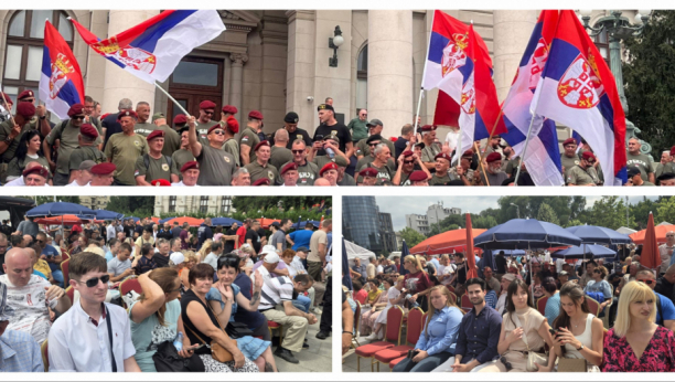 Okupljeni veterani skandiraju: Aco, Srbine.