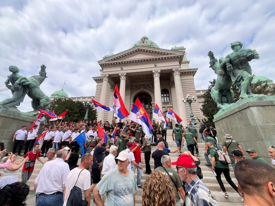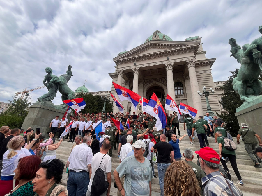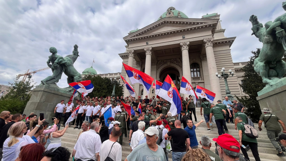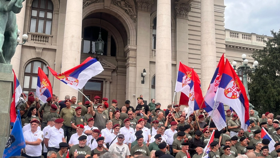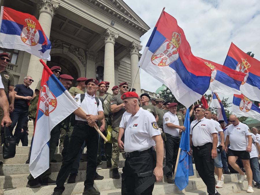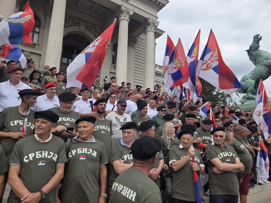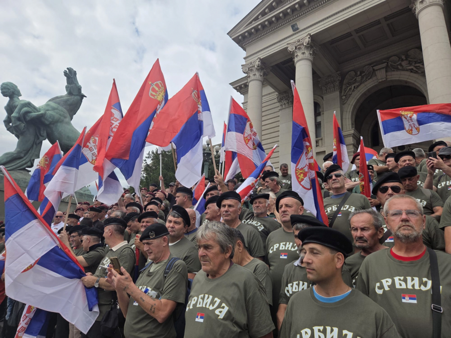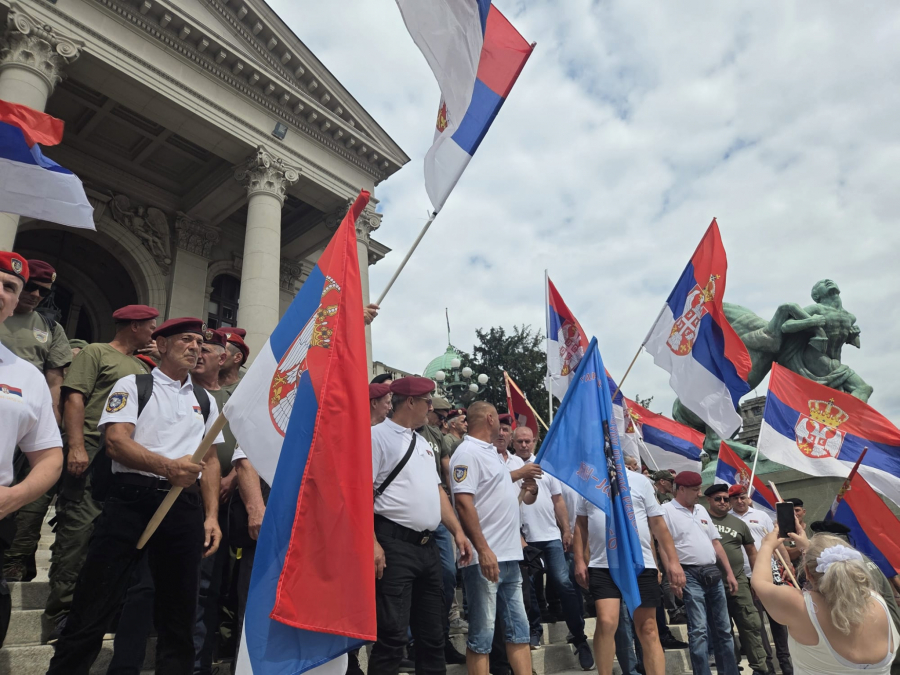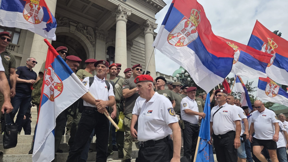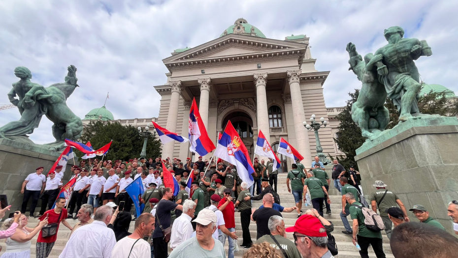 Kako možemo videti na snimcima, veliki broj veterana stigao je oko 15 časova ispred Narodne skupštine Srbije, a deo njih je mahao srpskim zastavama.