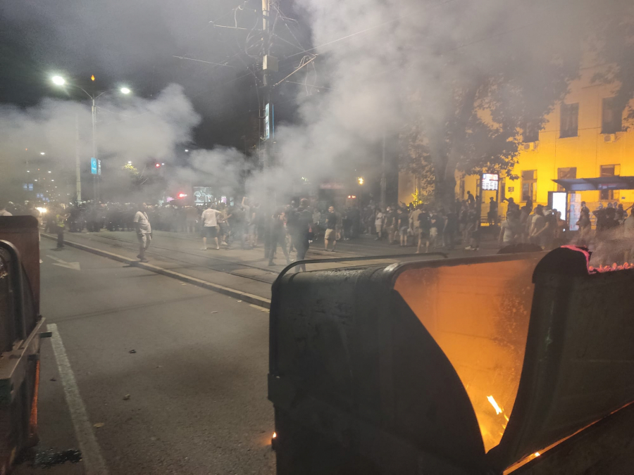 Oni su se okupili ispred Pravnog fakulteta i napravili kordon, a iza su zapalili nekoliko kontejnera koji i dalje gore.