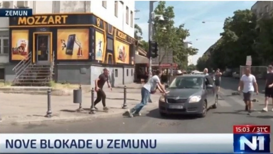 U Zemunu je jutros ponovo podignuta blokada Glavne ulice, ali ovaj put situacija je eskalirala u pravi horor. Jedan vozač je pokušao da prođe kroz blokadu, dok je njegov saputnik izašao iz automobila da pomeri kontejner koji je zatvarao put. Nažalost, okupljeni blokaderi nisu ostali mirni — pojurili su za njima, brutalno napali vozača koji je ostao u vozilu i uništili mu auto. Momka koji je izašao da pomeri prepreku su čak teško povredili, razbili su mu glavu.