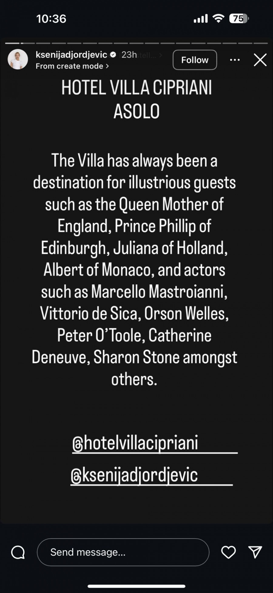 Gospođica Ksenija Đorđević se šetka po Italiji, spava u najskupljem hotelu villa Cipriani, a sve od para koje je zaradila za vreme Aleksandra Vučića!