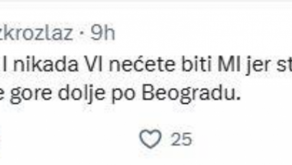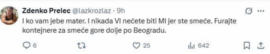 "Nikada vi nećete biti mi jer ste smeće. Furajte kontejnere i dalje po Beogradu dolje gore!", napisao je inspirisani Hrvat.