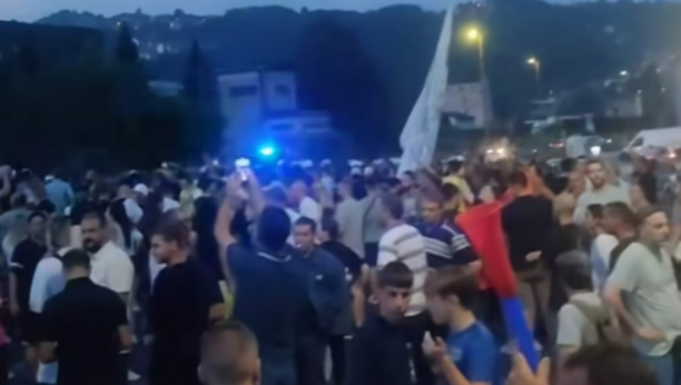 Ispred njih se isprečio kordon policije pod punom opremom. Policija se nalazi i sa druge strane blokade.