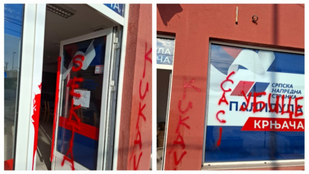 Monstruozne poruke ostavljene su na vratima, prozorima i zidovima Srpske napredne stranke u Krnjači.