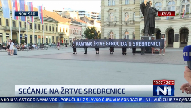 Tokom uključenja iz Novog Sada, opoziciona televizija N1 prikazala poruku kojom se srpski narod vređa i označava kao genocidan, dok su blokaderi razvili natpis:"Pamtimo žrtve genocida u Srebrenici".