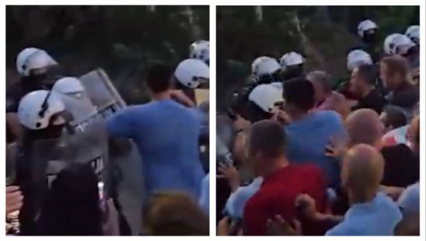 Kako se može videti na snimku koji objavljujemo, kolovođa nasilnika Radovan Novaković nasrnuo je danas na štit pripadnika policije, i pokrenuo da reka ljudi krene maltene da ih pregazi kao stampedo.