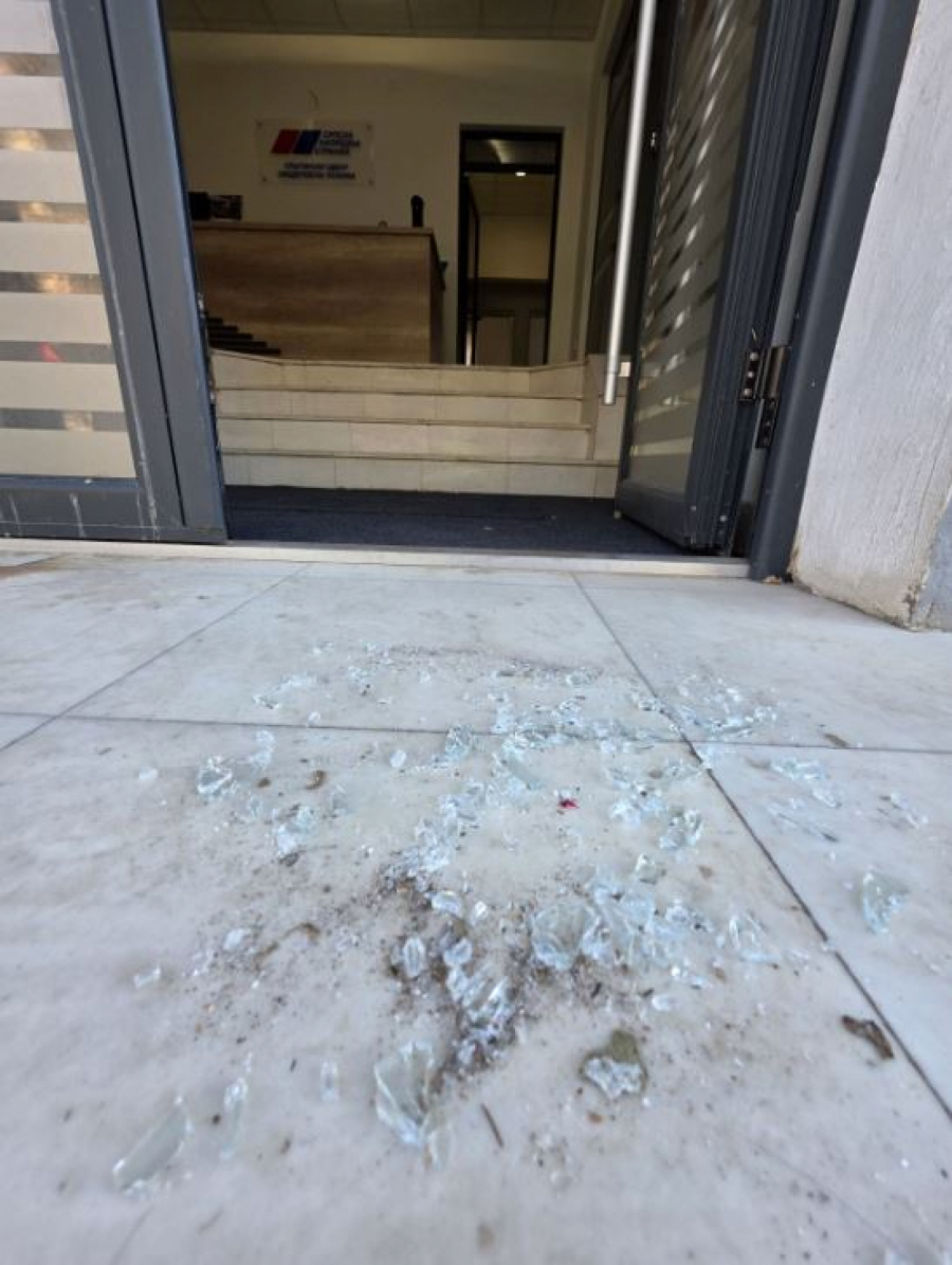 Za sada nepoznati teroristi razbili su staklo kamenicama na prostorijama SNS.