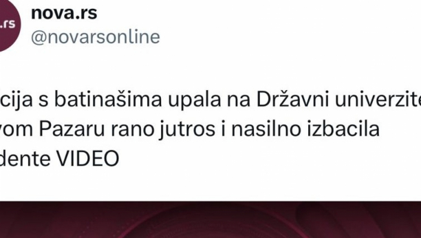 "Policija s batinašima upala na Državni univerzitet u Novom Pazaru rano jutors i nasilno izbacila studente", piše na sajtu Nove S!