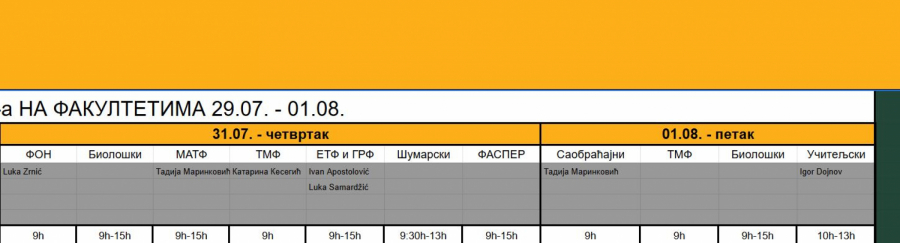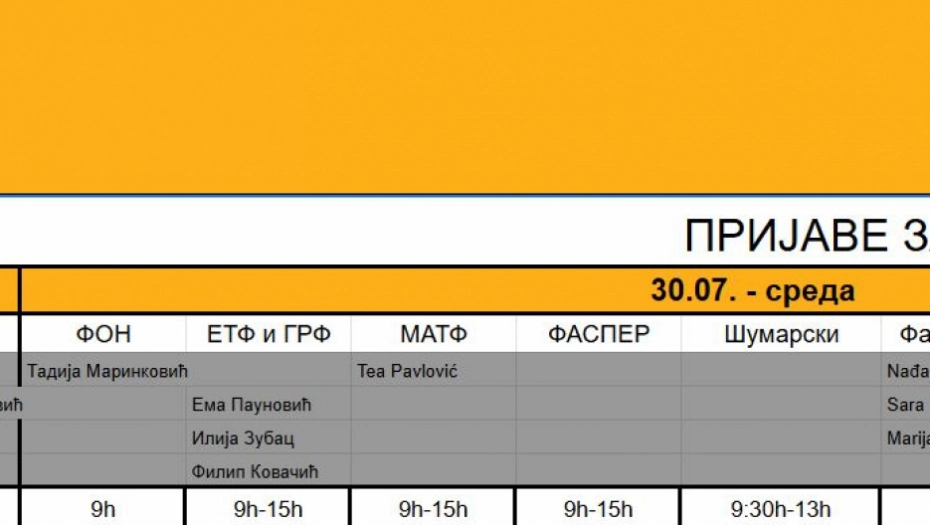 Objevljen je i spisak fakulteta, kao i imena "dežurnih" blokadera zaduženih za vrbovanje brucoša.