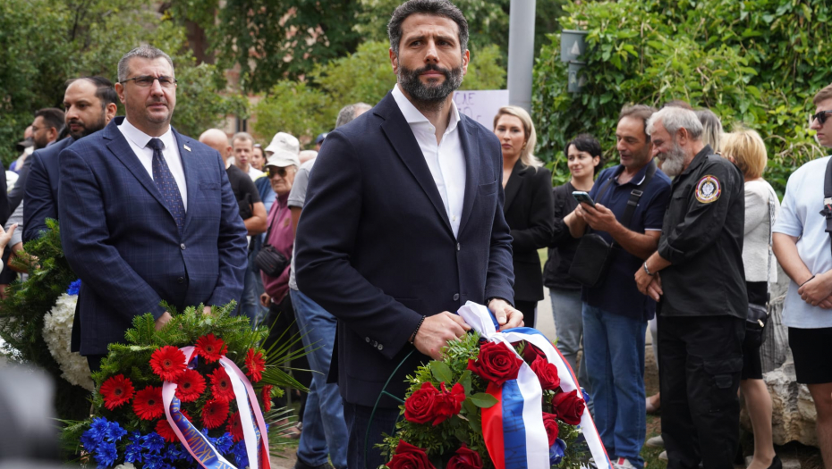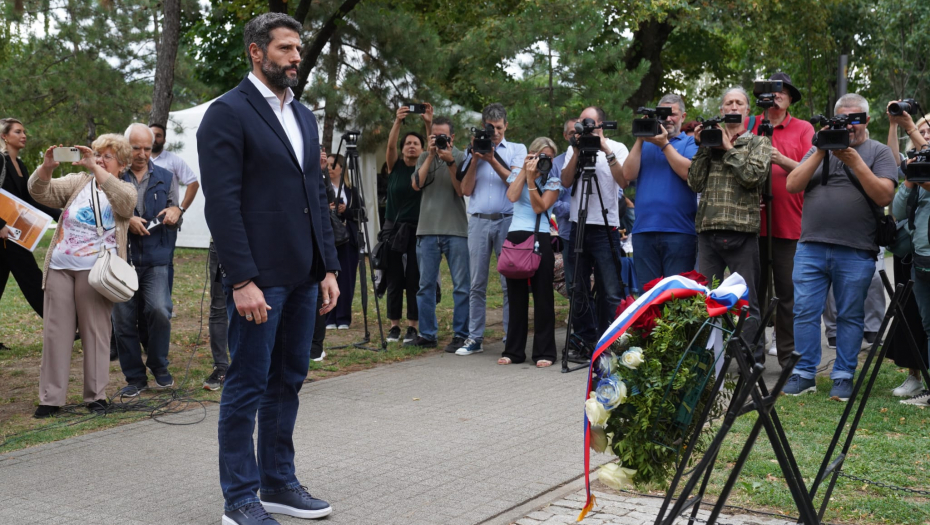 U Tašmajdanskom parku gradonačelnik je potom položio venac na Spomen-ploču srpskim žrtvama stradalim u ratovima 1991–2000. godine na prostoru bivše Jugoslavije.