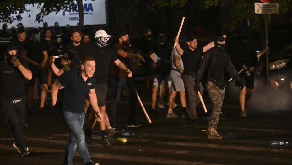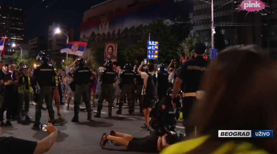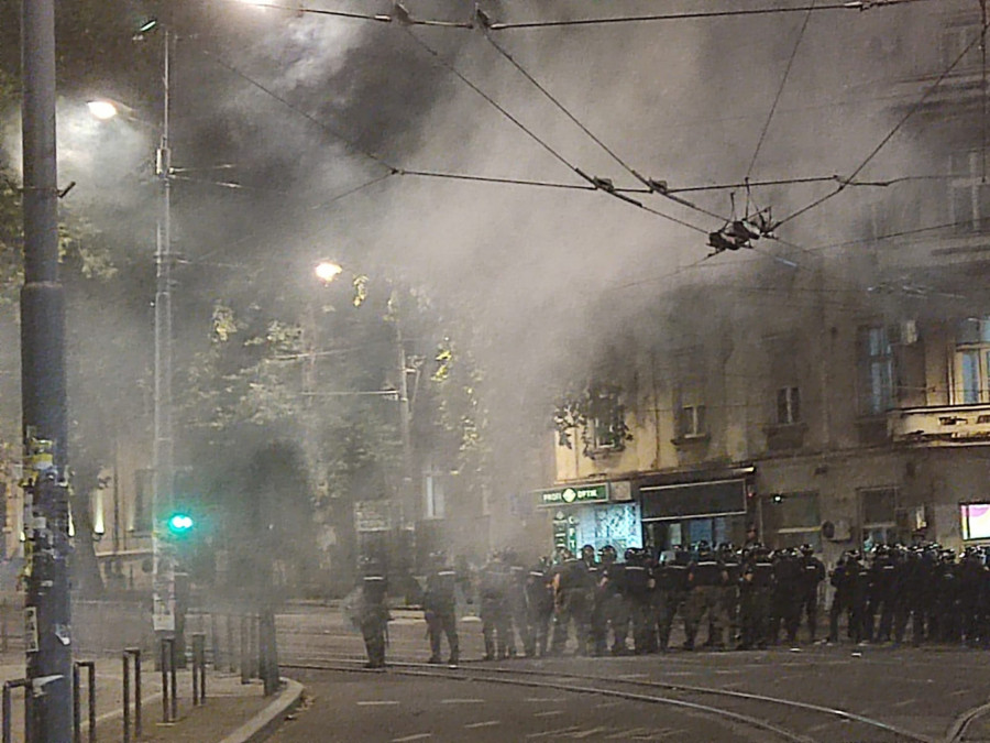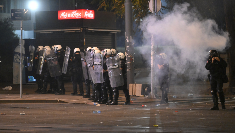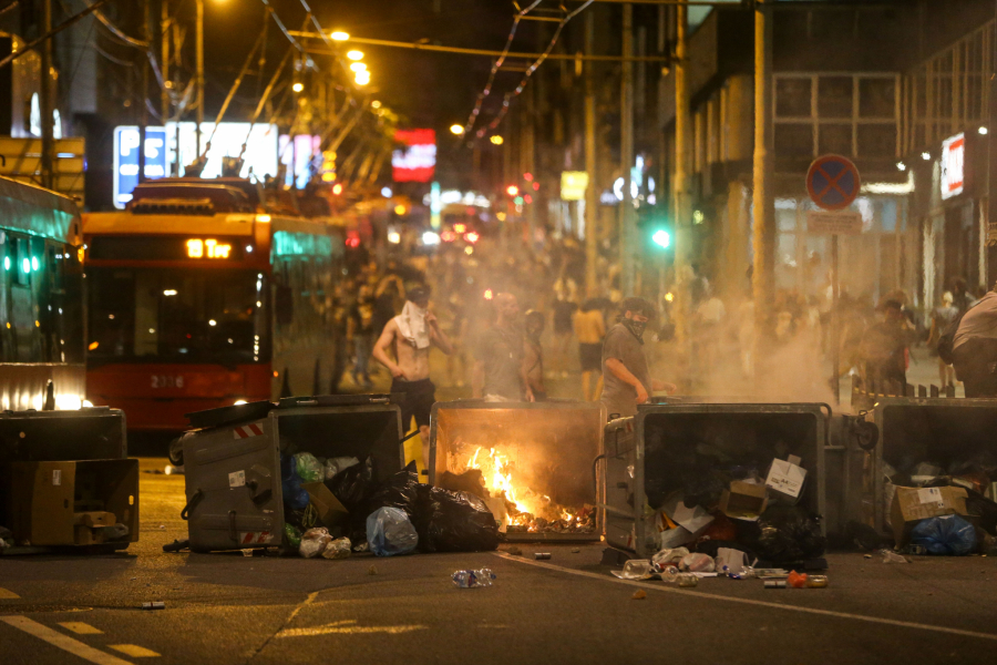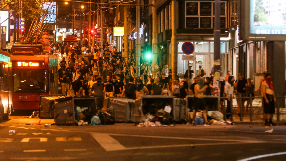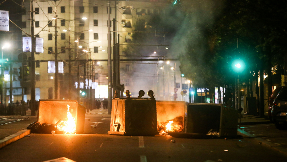 Blokaderi siledžije su pokušali da razbiju i prozore na zgradi Vlade, a kasnije su se prebacili na Slaviju, palili kontejnere, razbijali kamenice i nastavili da gađaju pripadnike reda.