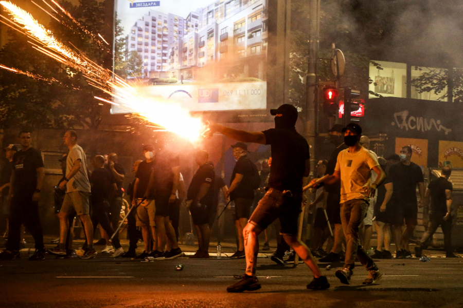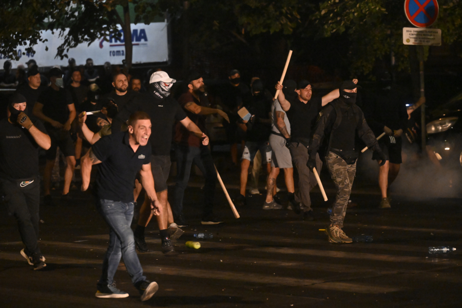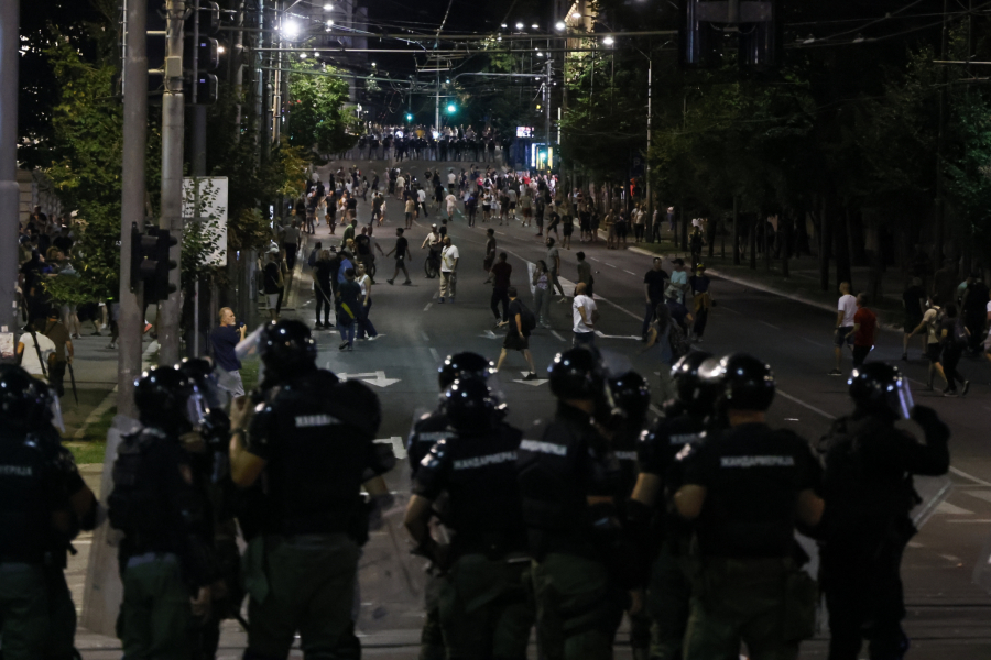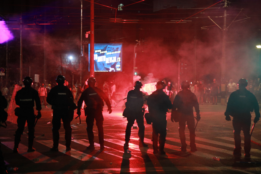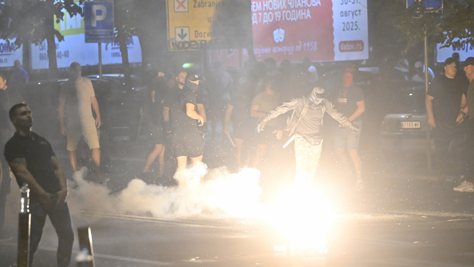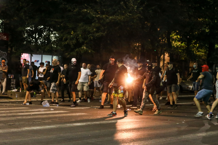 Blokaderi siledžije su pokušali da razbiju i prozore na zgradi Vlade, a kasnije su se prebacili na Slaviju, palili kontejnere, razbijali kamenice i nastavili da gađaju pripadnike reda.