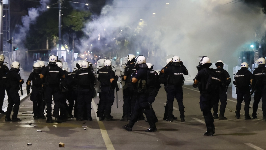 U Beogradskoj ulici nasilnici su krenuli da gađaju policiju kamenicama, a nisu dozvolili ni vatrogascima da ugase kontejnere koje su prethodne zapalili.