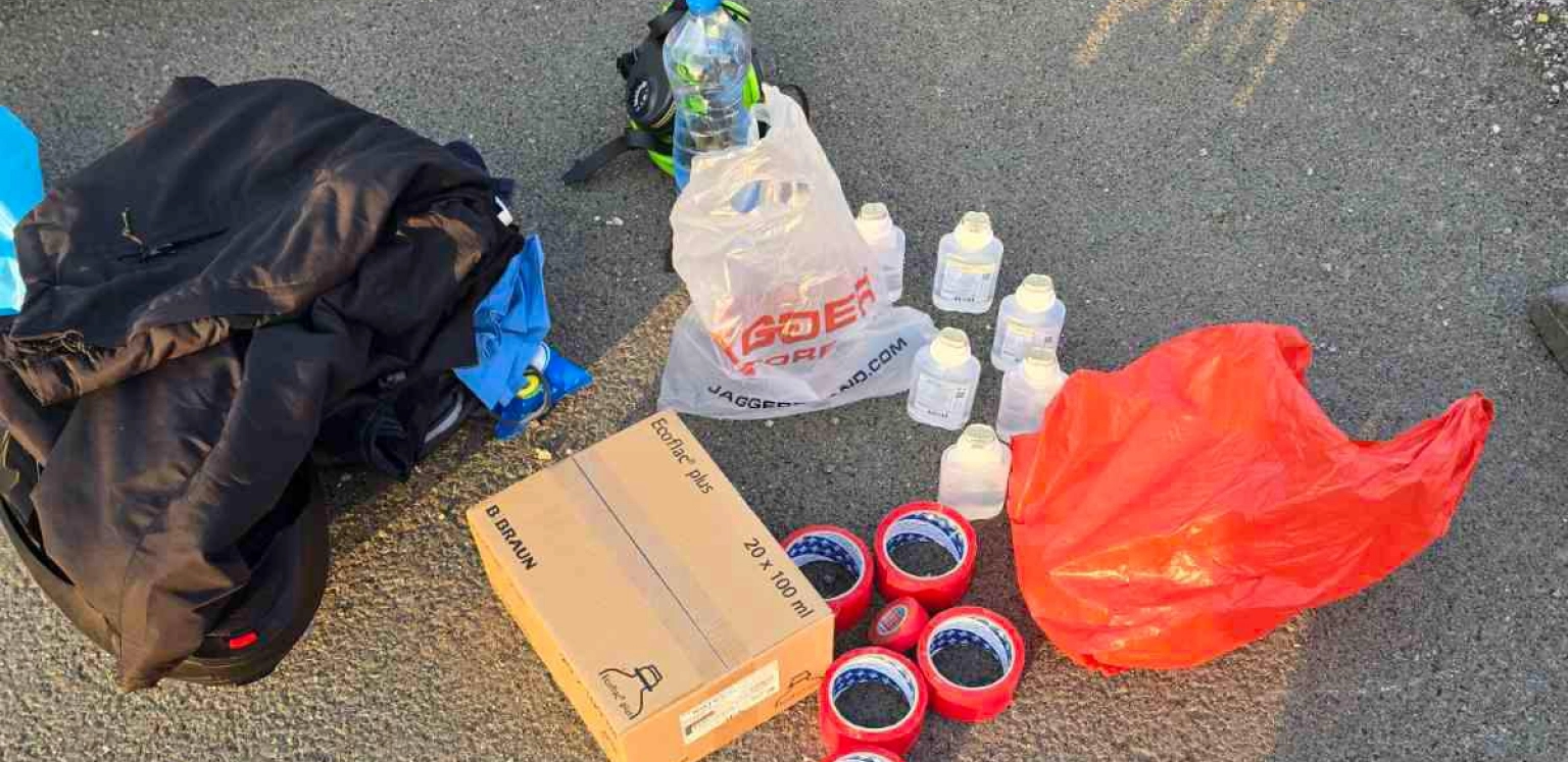 S.G. koji je upravljao vozilom marke ‘’WolksWagen VW CADDY’’ (u vlasništvu S.G.. U pomenutom vozilu prilikom kontrole istog pronađeno je više bočica napunjenih zapaljivom materijom, selotejp trake, infuzije „štanga“, šafciger, gas maska kaciga kao i taktičke pantalone.
