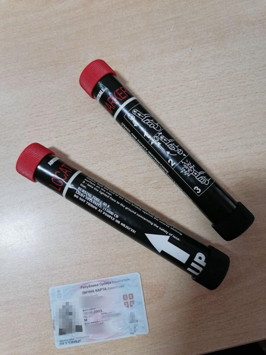 N.N. (2003) iz Užica, u društvu sa D.N. (2002) iz Užica - kod njih su pronađene 2 baklje.