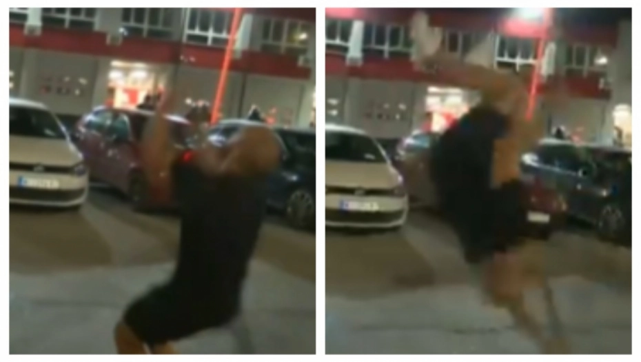Blokader iz Niša D.P. koji radi kao trener, zaleteo se prema kamerama Informera, i pokušao da uradi salto - ali je pao direktno na glavu i poljubio asfalt!