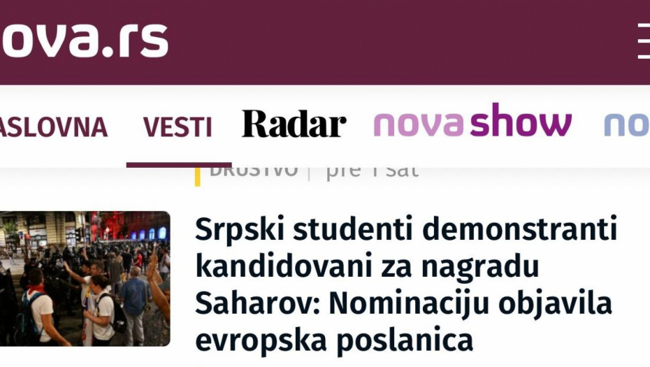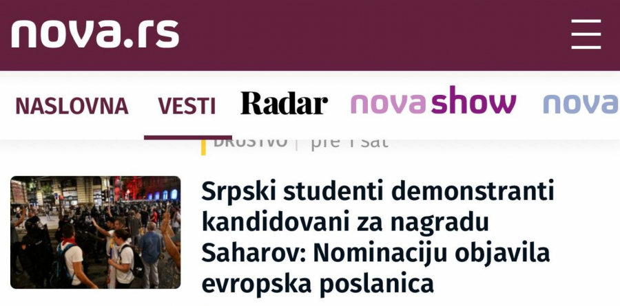 Glavni lobista Aljbina Kurtija u Evropskom parlamentu i član grupe prijateljsva "Kosovo" - Austrija, Helmut Brandšteter, predlozio je srpske blokadere studente, za najvecu antirusku nagradu, Saharov.