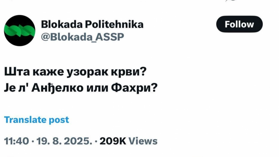 "Šta kaže uzorak krvi? Jel Anđelko ili Fakri", napisali su na mrežama blokaderi.