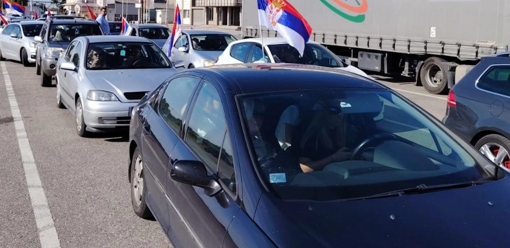 Građani Šapca krenuli su u kolonama automobila iz kojih se vijore srpske trobojke.