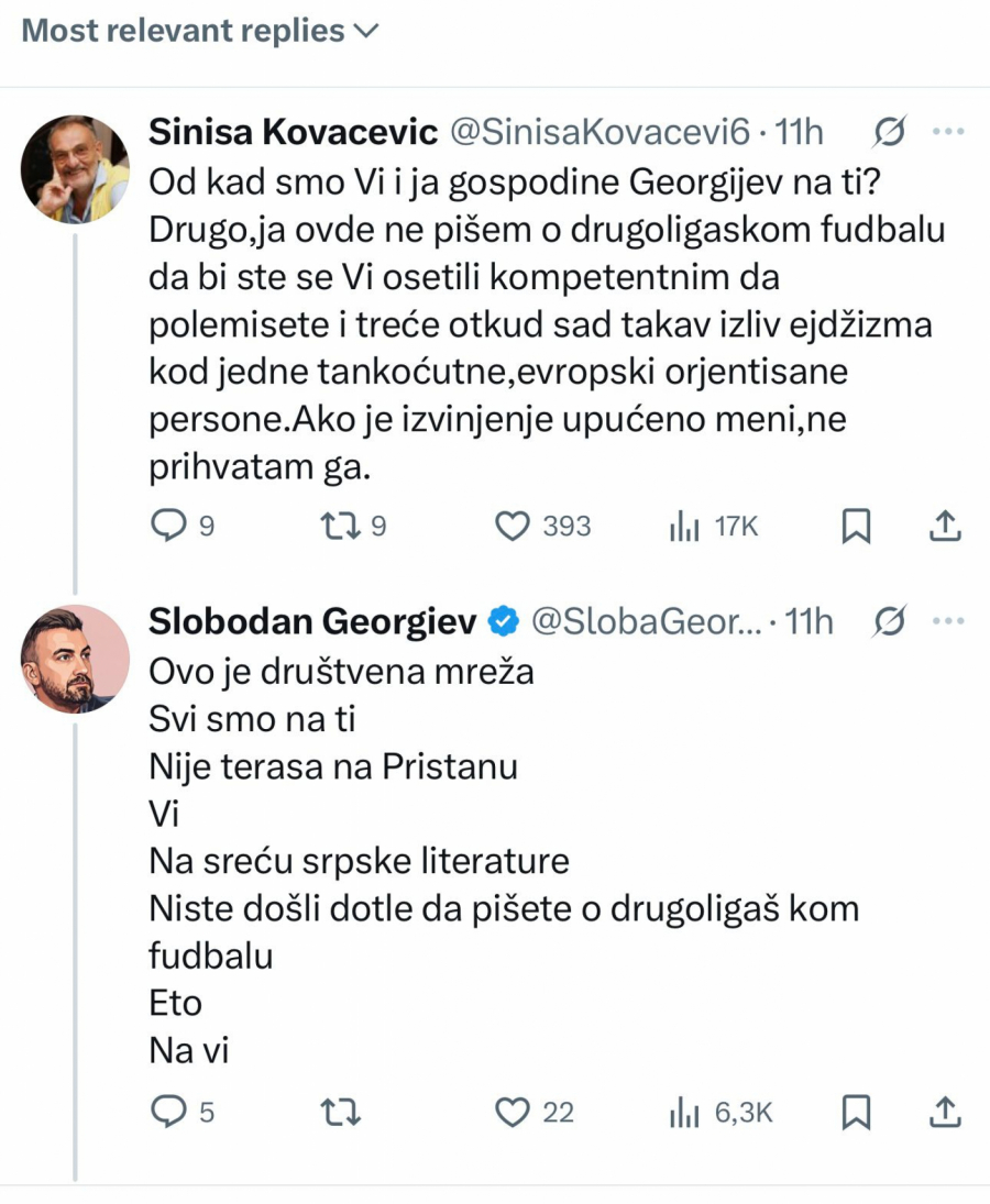 Georgiev mu je uzvratio pitanjem šta lupa i da je mator čovek, da bi odatle kola krenula nizbrdo, bez kočnica.