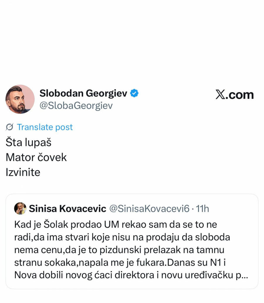 Nevolje u raju? Kovačević i Georgiev imali su žestoku razmenu na društvenoj mreži X, koju je, kako deluje, započeo Kovačević koji je kritikovao Šolakovu prodaju Junajted medije.