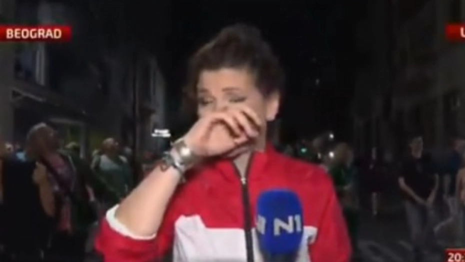 Reporterka TV N1 našla se u nezgodnoj situaciji izveštavajući sa blokada u Beogradu - na putu do Vukovog spomenika, nešto ju je poprskalo.