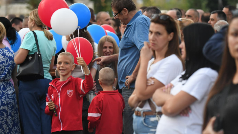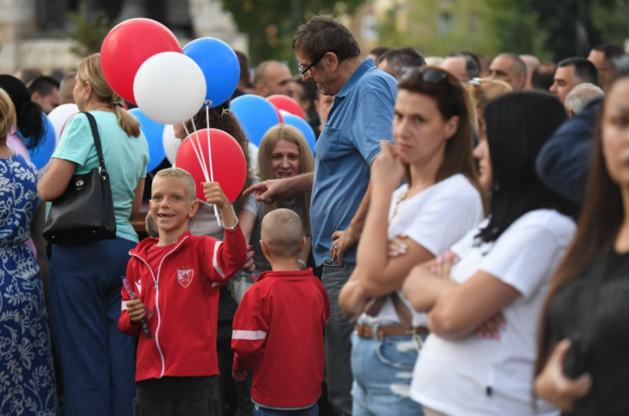 Vijorile su se tamo srpske trobojke, a Mitrovčani su imali i balone u bojama srpske zastave.