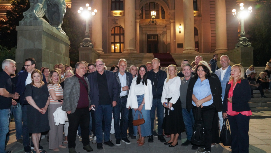 Ispred Doma Narodne skupštine okupili su se i studenti koji žele da uče iz Pionirskog parka, prenosi Tanjug.