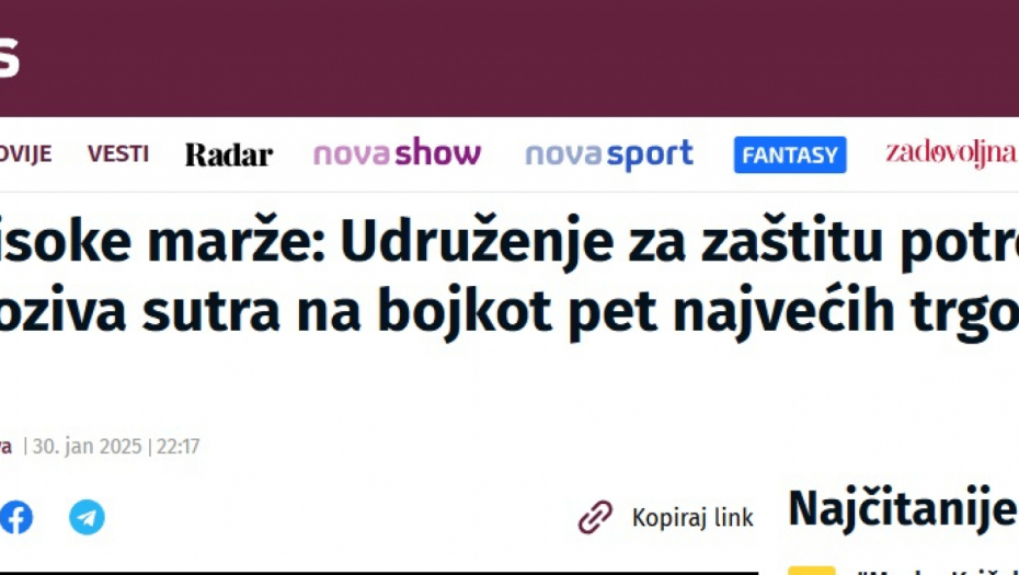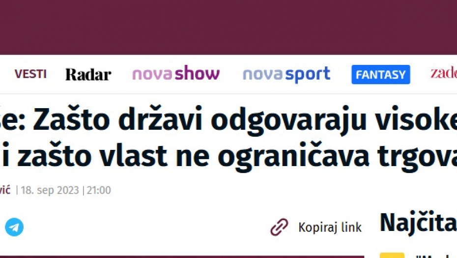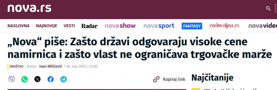 Među sledećim slikama se može videti i kako Nova S bukvalno piše: "Zašto državi odgovaraju visoke cene namirnica i zašto vlast ne ograničava trgovačke marže"
