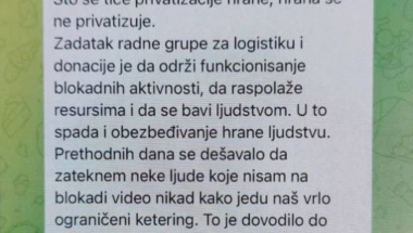 - Što se tiče privatizacije hrane, hrana se ne privatizuje. Zadatak radne grupe za logistiku i donacije je da održi funkcionisanje blokadnih aktivnosti, da raspolaže