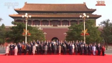 Na Trgu Tjenanmen u Pekingu održana je velika ceremonija povodom 80. godišnjice pobede u Kineskom narodnom ratu otpora protiv japanske agresije i Svetskom antifašističkom ratu. Pre početka ceremonije, Si Đinping i njegova supruga Peng Lijuan pozdravili su šefove stranih delegacija i njihove supružnike koji su prisustvovali ceremoniji na trgu ispred kapije Duanmen i fotografisali se sa njima.
