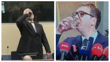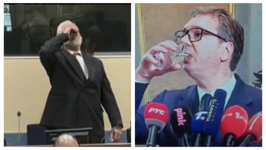 Uz fotografiju predsednika koji otpija vodu, napisao je "Praljak".