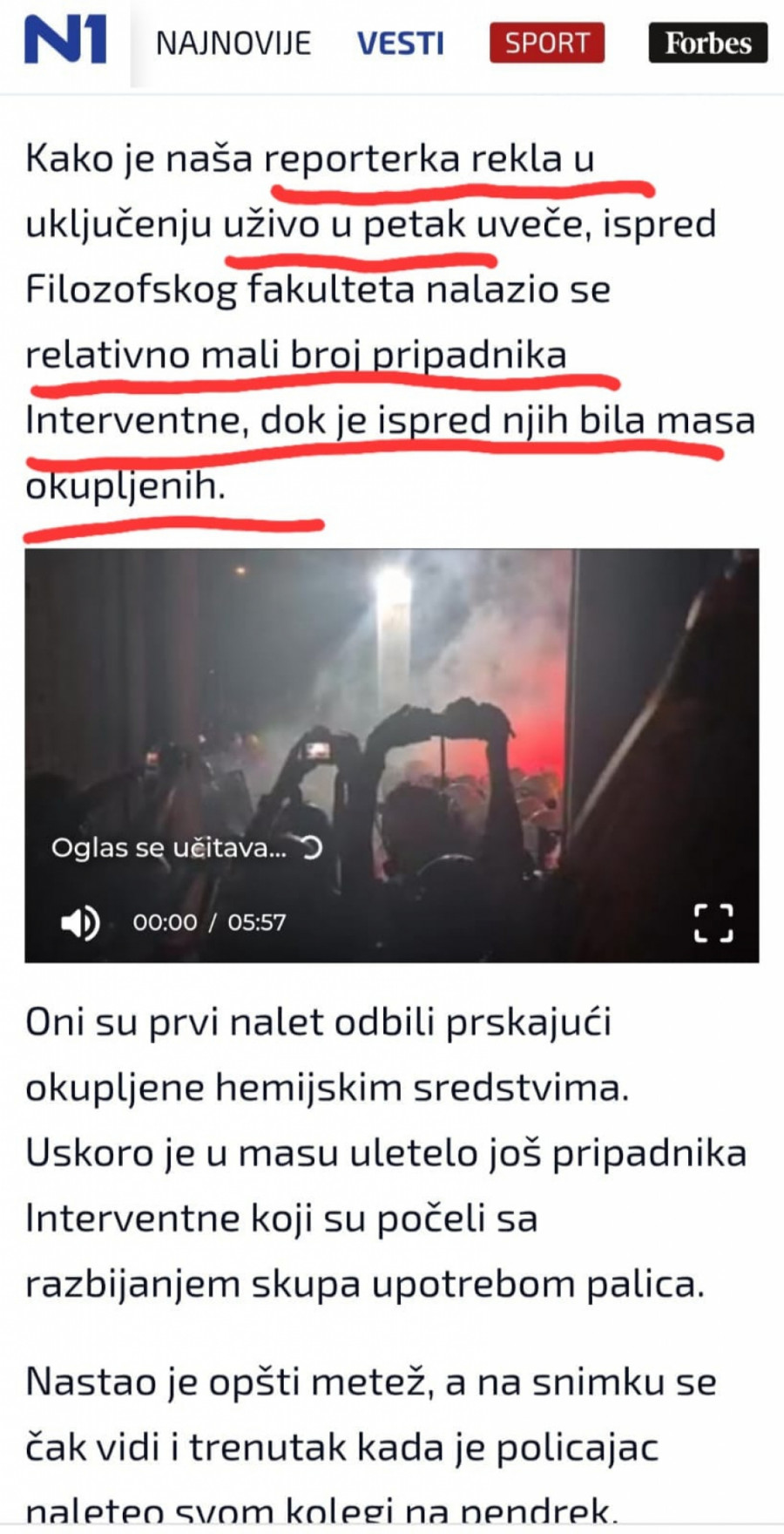Ispred Filozofskog fakulteta nalazio se relativno mali broj pripadnika Interventne, dok je ispred njih bila masa okupljenih, stoji dalje u tekstu.