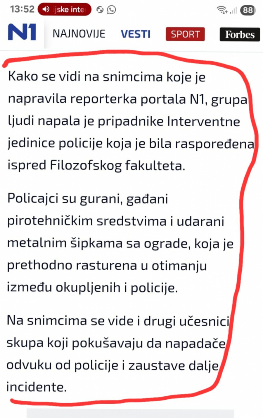 N1 PRIZNALA - POLICIJA JE NAPADNUTA! Evo kako su izveštavali o brutalnom nasilju blokadera u Novom Sadu (FOTO)