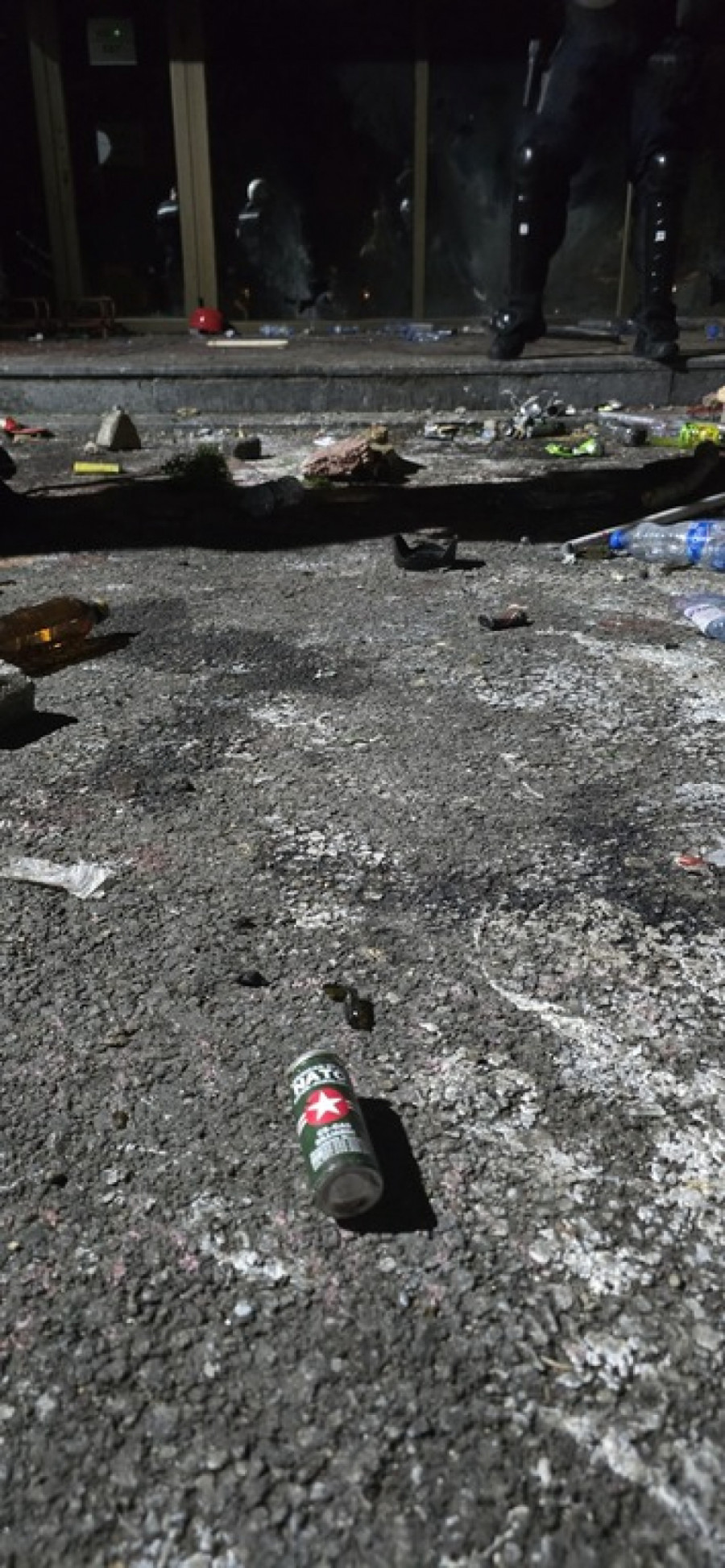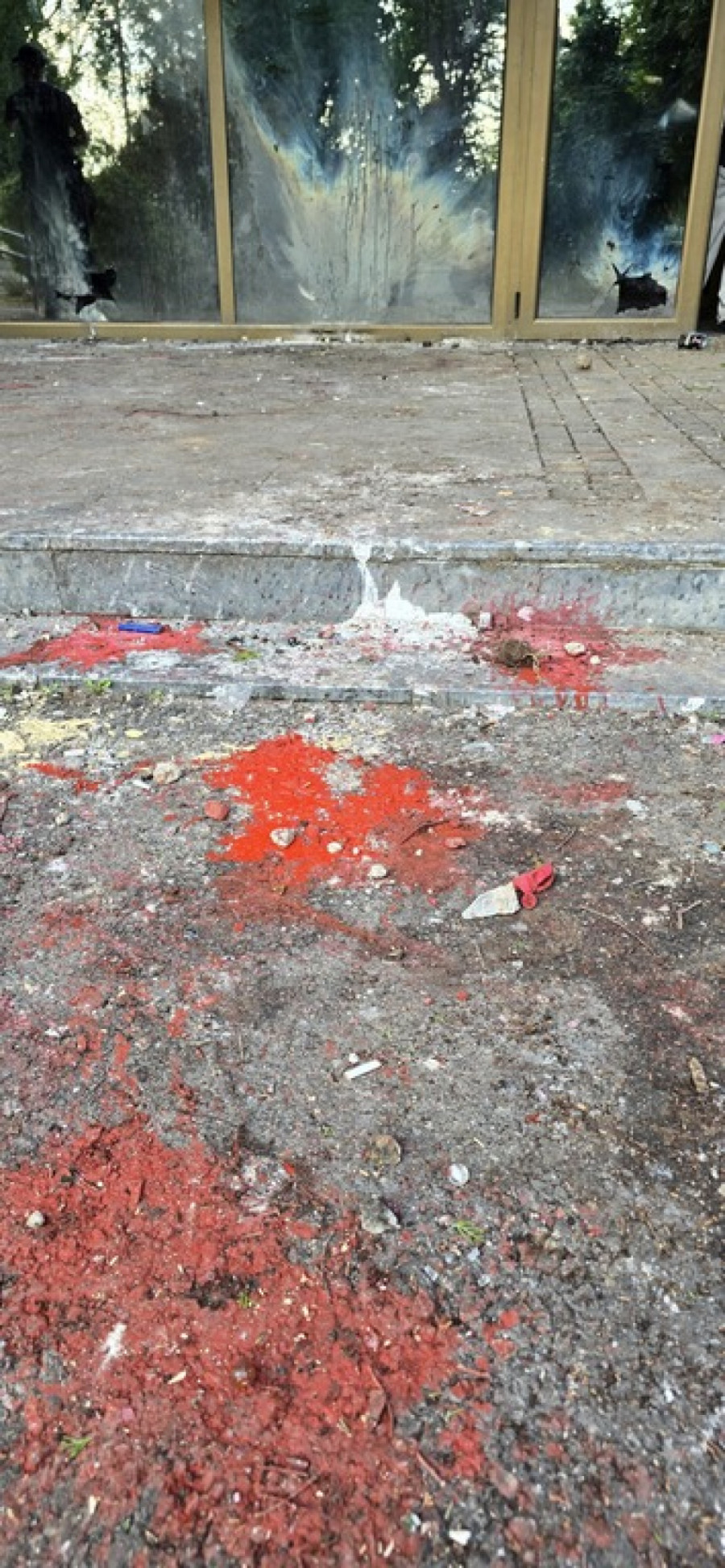 U saopštenju se posebno naglašava da je policija više puta upozoravala prisutne da ne narušavaju javni red i mir i da se udalje od zgrade. Uprkos tim upozorenjima, usledili su nasilni napadi kamenicama, petardama, bakljama, suzavcem i gvozdenim šipkama na pripadnike policije, nakon čega je došlo do njihove intervencije.