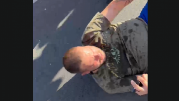 Situacija kulminira fizičkim obračunom kada blokaderi šutiraju čoveka i to s leđa sve dok nije pao na pod.