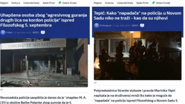 Naime, na sajtu N1 juče oko 14.20 sati objavili su vest da je "Uhapšena osoba zbog agresivnog guranja drugih lica na kordon policije". Lice je uhapšeno zbog događaja od 5. septembra ispred Filozofskog fakulteta u Novom Sadu.